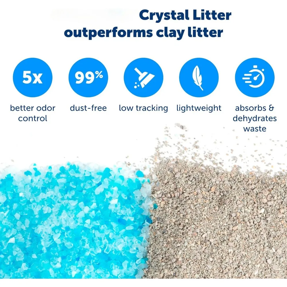 - REMOVES ODORS QUICKLY: Crystal litter absorbs urine and dries solid waste to quickly remove odors 5 times faster than clumping clay litter